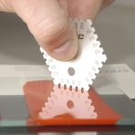 4. Evaluar los dientes del calibre. El espesor de la película húmeda se encuentra entre el diente más grande que está mojado y el diente más pequeño que no está mojado.