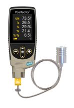 Mide y registra las condiciones climáticas que incluyen: humedad relativa, temperatura del aire, temperatura de la superficie, temperatura del punto de rocío, velocidad del viento y diferencia entre las temperaturas de la superficie y del punto de rocío.